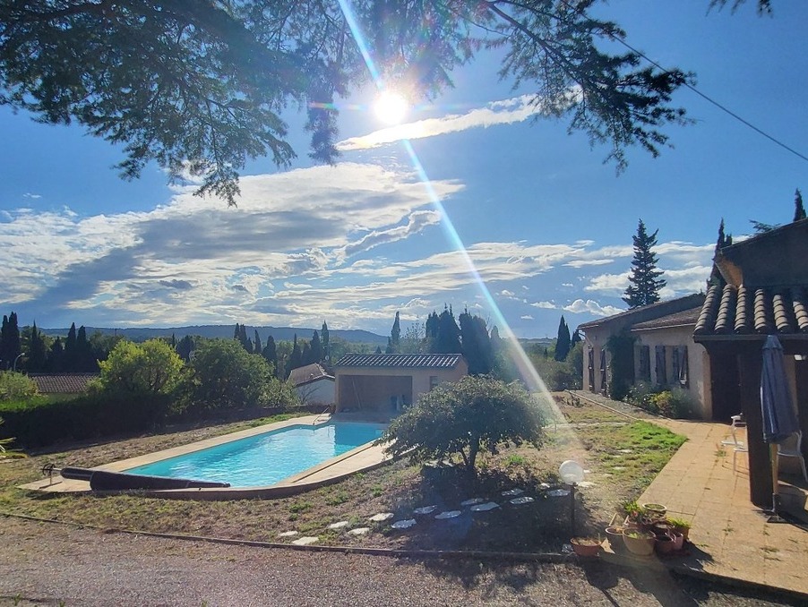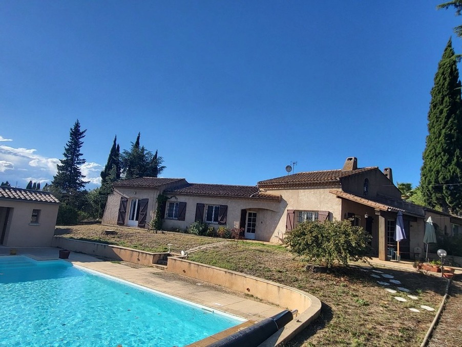 Belle villa de plain pied de type 8 comprenant : 7 chambres dont une chambre parentale avec sa salle d'eau privative, un séjour avec cheminée et climatisation réveresible, une grande salle à manger, une cuisine aménagée et équipée, une seconde salle d'eau, 2 WC, et un spacieux garage avec mezzanine de rangement. L'ensemble a été édifié sur une parcelle clôturée et arborée de 4 037 m² située sur les hauteurs du village, avec arrosage intégré, puits, piscine en dur de 11mx8m agrémentée de son pool house, local technique, et belle vue sur les Pyrénées. Possibilité de prélever et de détacher un parcelle de terrain constructible. Environnement au calme. Idéal grande famille. Prix TTC et Honoraires à charge vendeur TTC ACCES IMMOBILIER - Tél. + 33 (0)4 68 78 53 20 Plus d'informations sur www.acces-immobilier.com