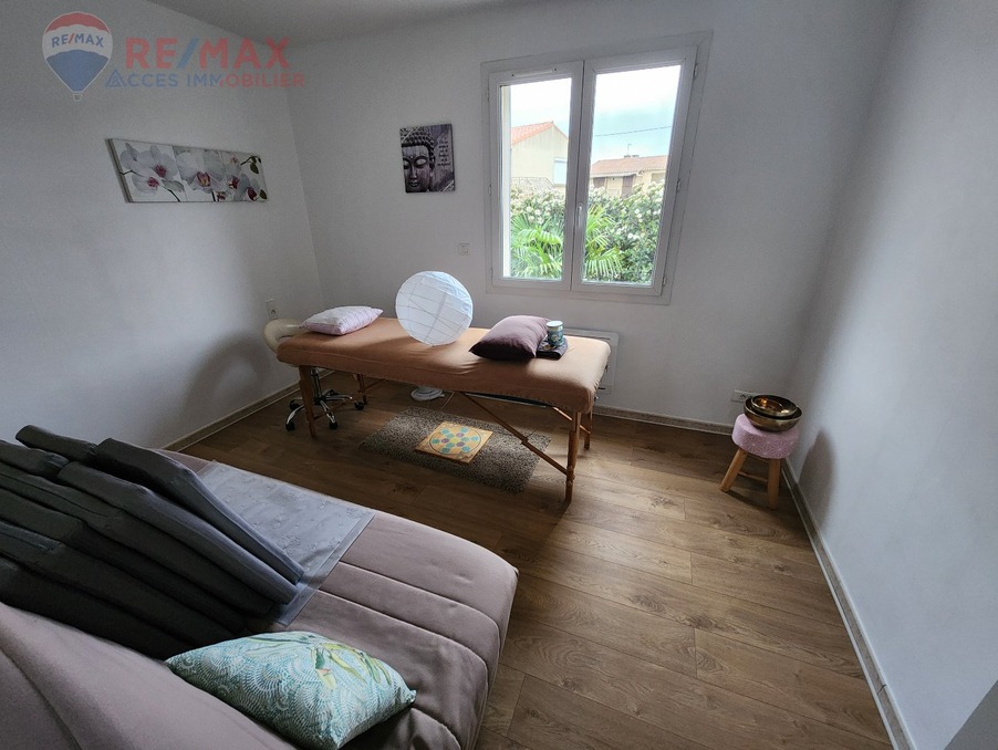 Pavillon 3 faces de plain-pied de type 4, composé de 3 chambres, d'une belle pièce à vivre lumineuse avec une cheminée et insert, d'une cuisine équipée et aménagée, d'une buanderie, d'une salle d'eau, d'un WC séparé et d'un garage avec une cave en sous sol. Le tout a été construit en 1999 sur une parcelle de 488m² piscinable, clôturée et arborée, située à proximité de toutes commodités et commerces. Ce bien profite d'une bonne exposition au SUD, de menuiseries récentes en PVC double vitrage, de volets roulants électriques, d'une climatisation réversible par split dans le séjour et d'une installation électrique refaite à neuf. Excellent état, aucuns travaux à prévoir. IDEAL FAMILLE OU RETRAITES Honoraires TTC charge vendeur ACCES IMMOBILIER - Tél. + 33 (0)4 68 78 53 20 Plus d'informations sur www.acces-immobilier.com